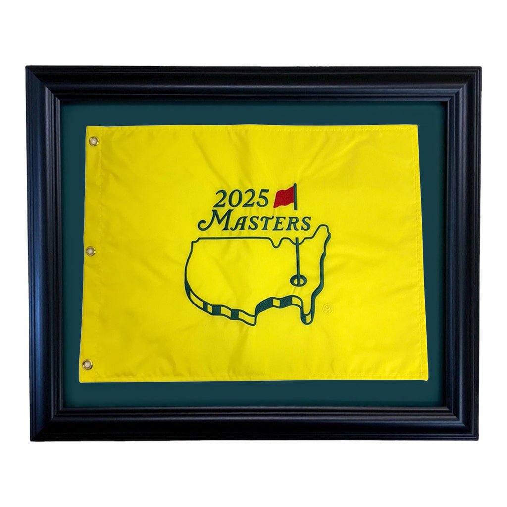 Nothing says class like a professionally framed 2025 Masters Framed Pin Flag. Measuring at 23 inches wide by 19 1/2 inches tall, this framed flag will be the talking piece you are looking for your home, office or sports room. Masters pin flags are the one of the top selling items inside Augusta National's Pro Shop. MMO Golf offers this popular flag matted with professional green mat and black frame. Impress your golfing buddies with the iconic Masters pin flag framed in your collection.