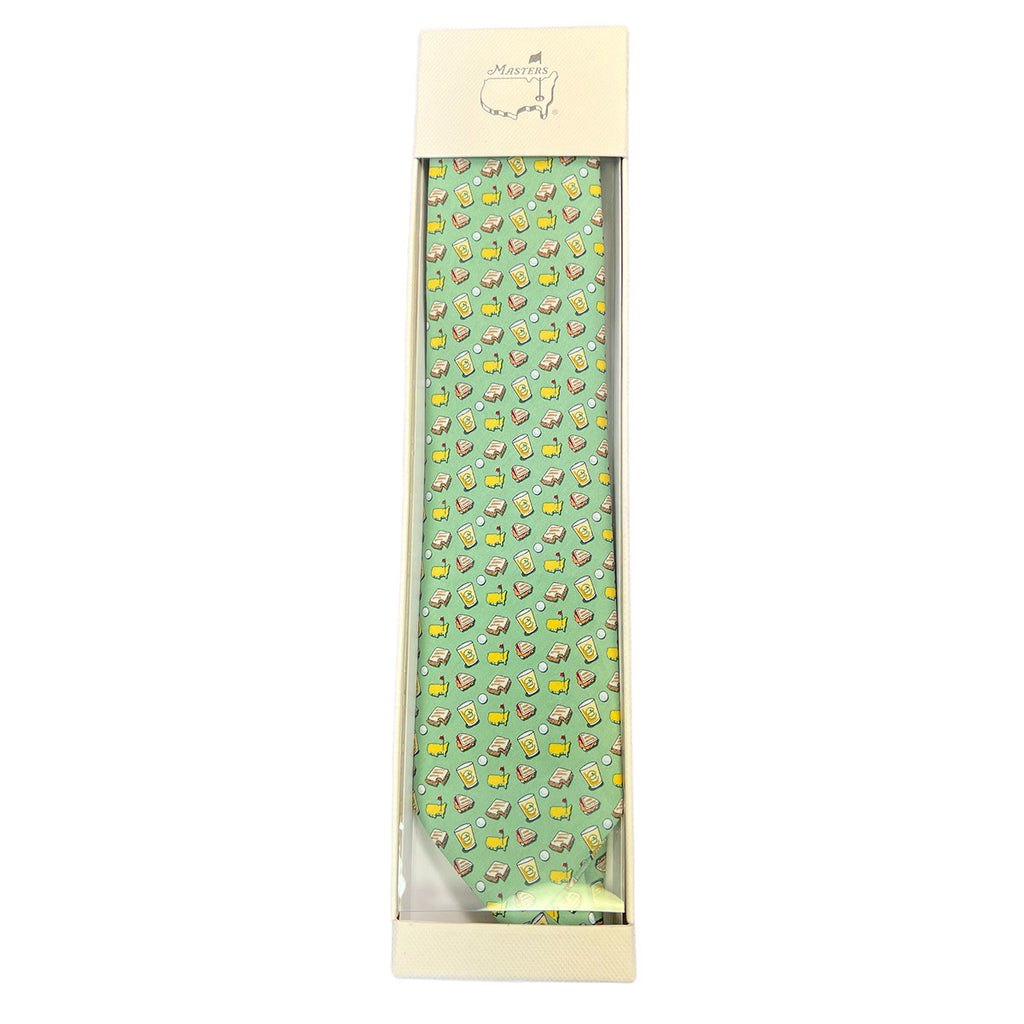 Specially designed by Vineyard Vineså¨ for the Augusta National Pro Shop, this Masters tie features mini Masters cups, sandwiches, golf balls and the official logo in a pattern that will have EVERYONE asking you where you got it. This tie is the perfect gift for the stylish, yet fun, golf fan in your life. Pair this tie with a Masters Vineyard Vineså¨ belt for the perfect combination of fun and sporty!