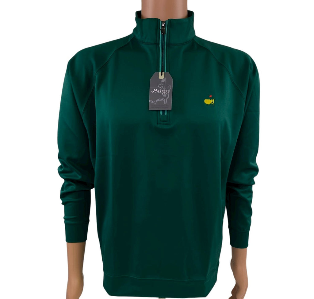 The Masters Tech Collection represents contemporary designs combined with cutting edge fabrics that are engineered to provide supreme performance on and off the course. With UPF 30 protection, this specially constructed, lightweight fabrication is designed to provide ultimate protection against the sun's harmful UV rays. Soft, breathable ,and comfortable, this garment will stay smooth without needing and iron. Moisture Wicking. Using moisture control, this fabric will keep you dry by wicking moisture away from the skin for maximum comfort. Masters Tech performance 1/4 zip pullovers are fabricated of 94% polyester and 6% spandex to keep you cool and dry while on or off of the course. This pullover has the signature Masters logo embroidered on the left side of the chest and sturdy zipper. The zipper is edged with dark grey to add some interest and the bottom hem and sleeves are slightly banded for an excellent fit. It's all about the details and feeling great out there, and that's where Masters Tech wins the day.